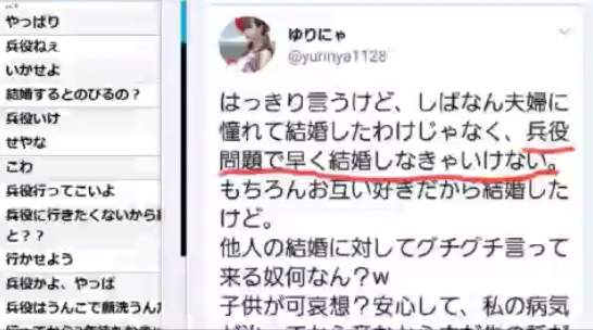 これが今までゆりにゃが言わなかった暴露とコレコレは理解した。ゆりにゃとミンギュが付き合いたての頃にミンギュからすごくDVを受けていた。痣の写真もツイッターに載せていたとコレコレは話す。この暴露が本当だとするとミンギュはゆりにゃをATMや兵役に行きたくない道具にしていただけと言われてもしょうがない。兵役は約2年行き相当過酷なようだ。